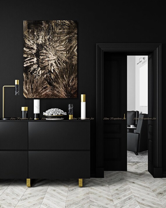 Black And Gold Abstract Painting Textured Palette Knife Art Modern