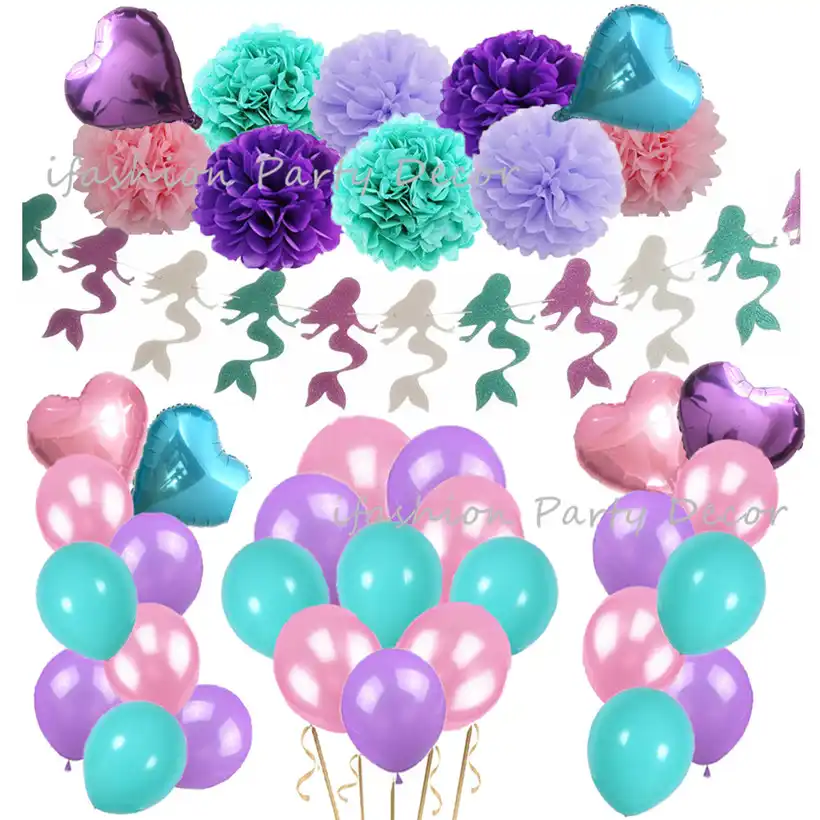 Little Mermaid Party Pink Lavender Purple Pom Poms Birthday