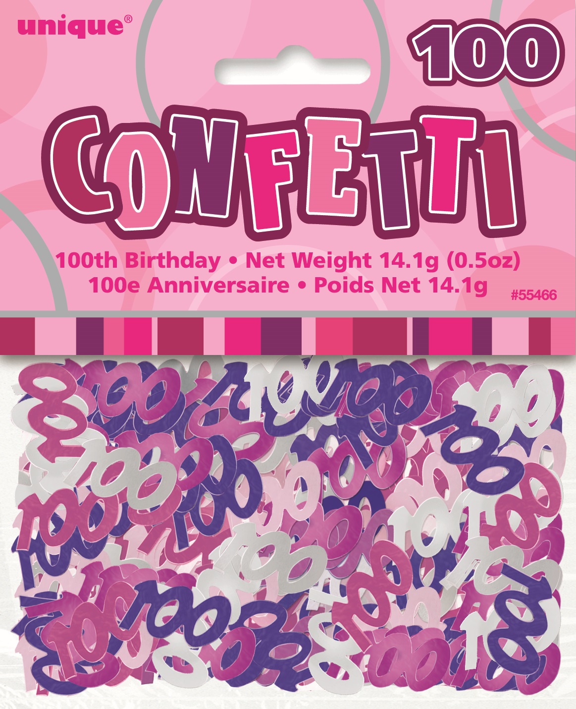Pink Glitz Age 100 Birthday Table Confetti 14 Gram Packet 100th
