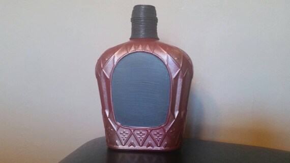 Now for inspiration lets check out 12 different photos of various bottles jars and jugs that were converted into oil lamps or lanterns using the same steps as mentioned in our two tutorials. Crown royal bottle spray painted and decoupage with decorations decor object find handmade old and one of a style goods and items related to personal search. Diy painted and distressed crown royal bottle read more.