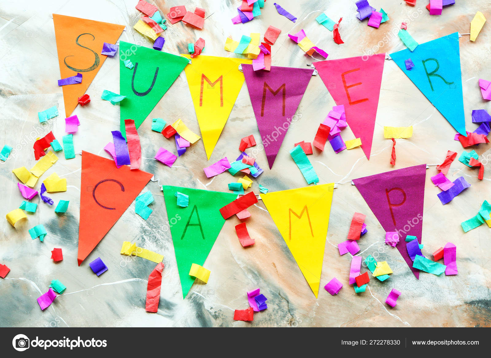 Garland With Text Summer Camp And Decor On Marble Background
