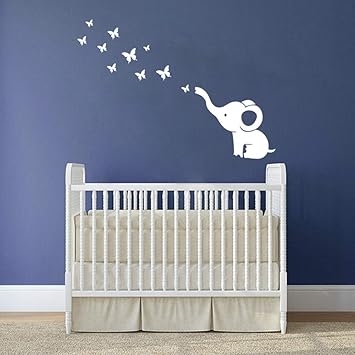 Amazon Com Nursery Room Decor Cute Elephant Blowing Butterflies