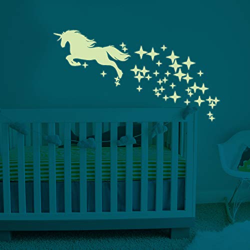 Unicorn Vinyl Wall Decals Glow In The Dark Stars Diy Kids Import