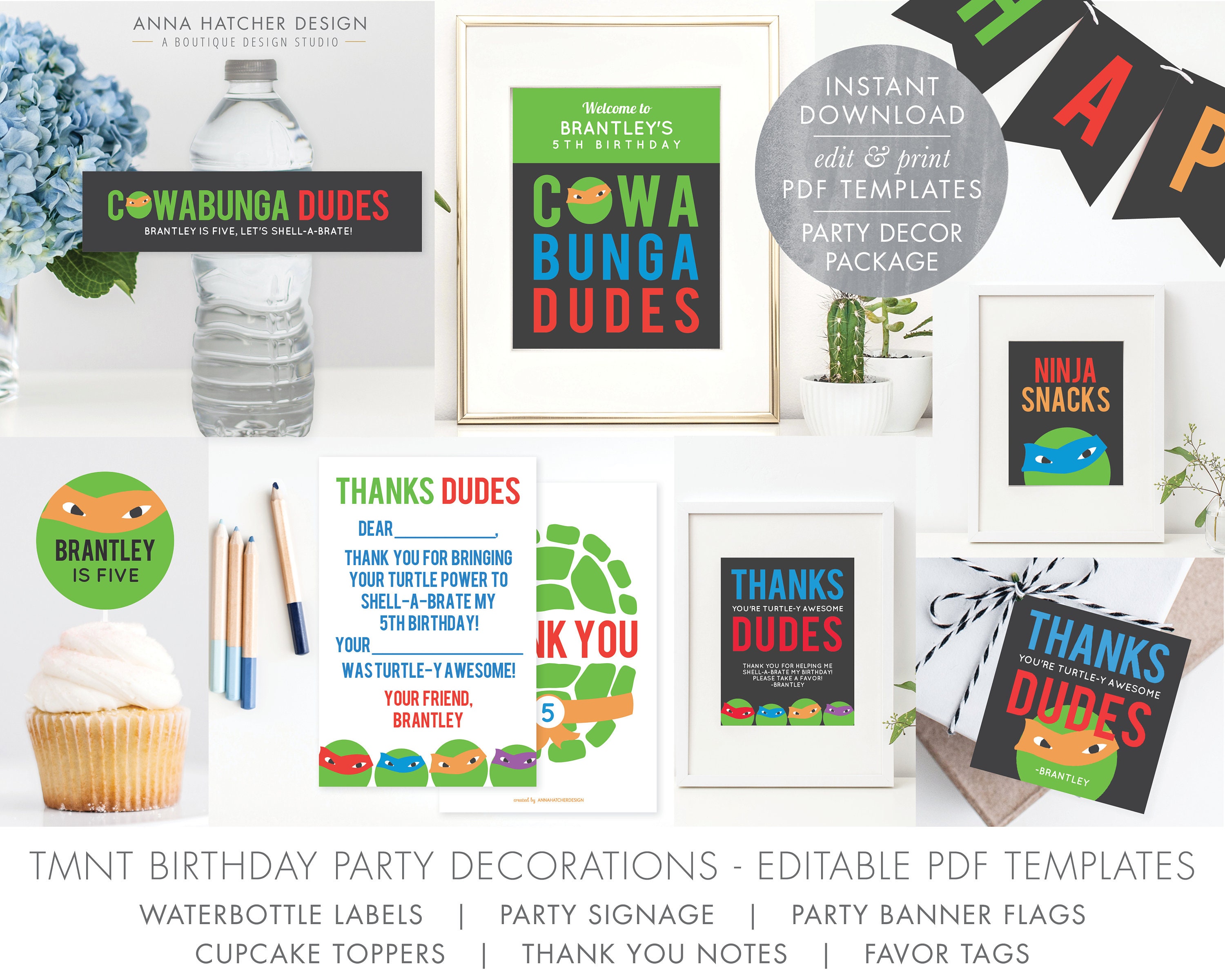 Tmnt Birthday Party Decorations Ninja Turtle Party Diy Pdf Etsy