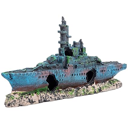 Slson Aquarium Decorations Shipwreck Fish Tank Battleship