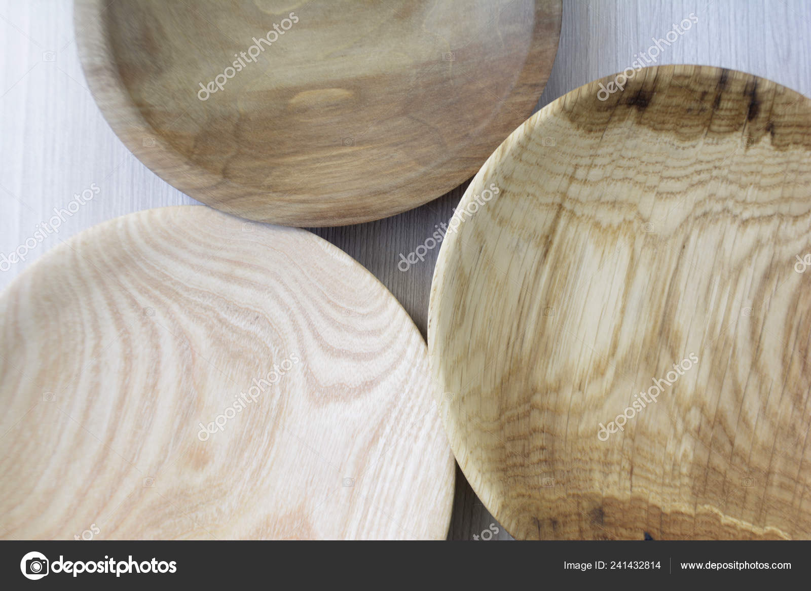 Empty Wooden Plates Table Kitchen Decor Brown Tones Stock Photo
