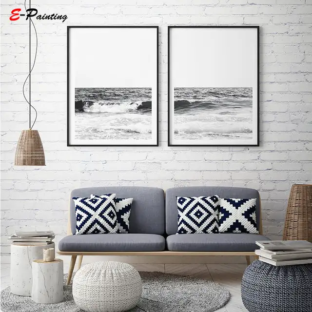 Modern Canvas Wall Art Ocean Wave Print Beach House Decor Coastal