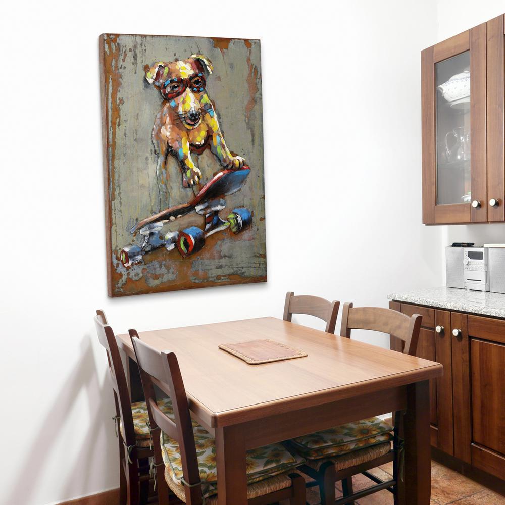 Dog On Skateboard Mixed Media Iron Hand Painted Dimensional Wall
