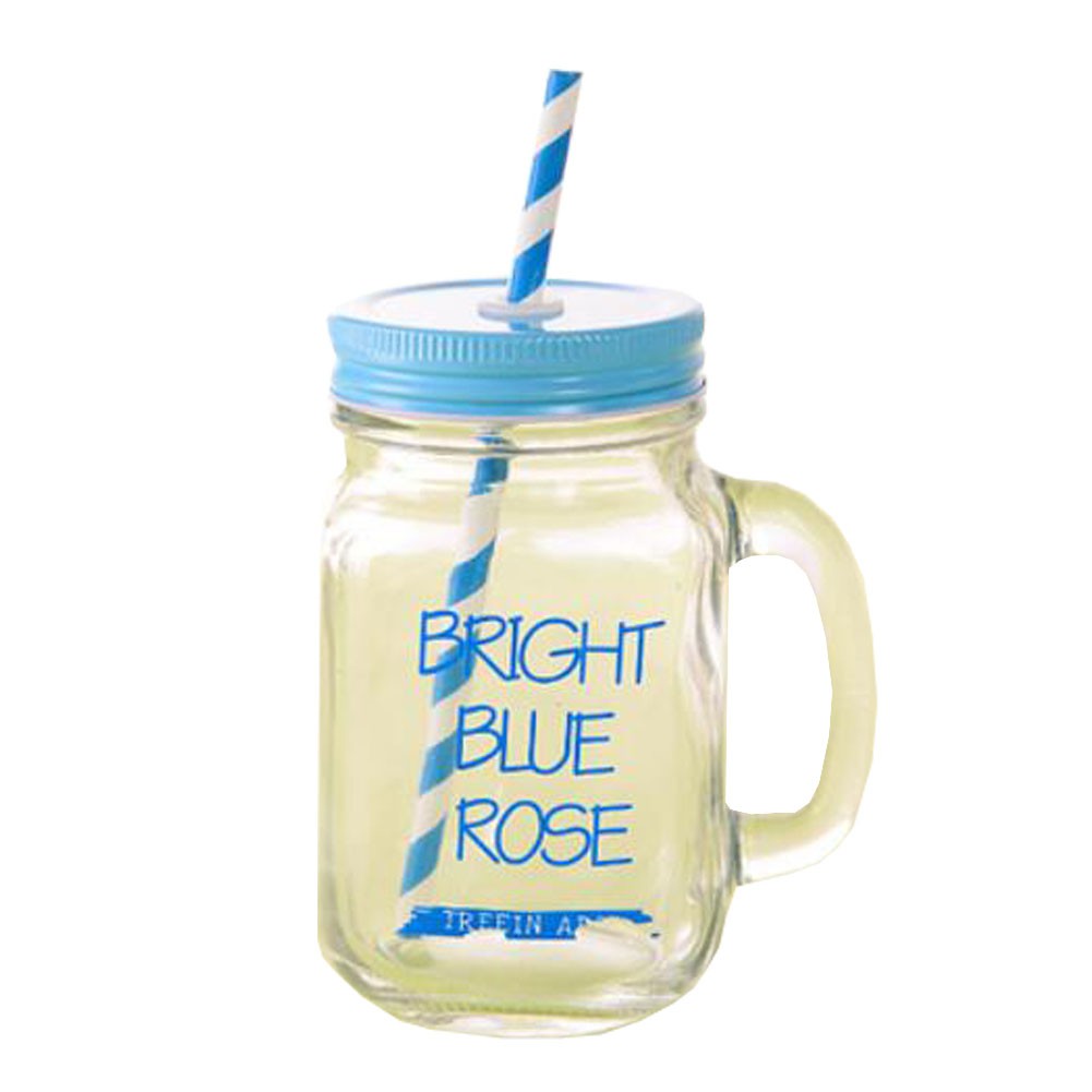 Mason Jar Mugs With Handle And Lid And Plastic Straws Decorative