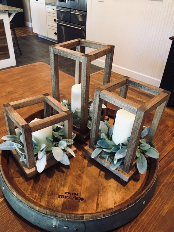 Wood Lanterns Farmhouse Style Wood Lantern Centerpiece Set Etsy