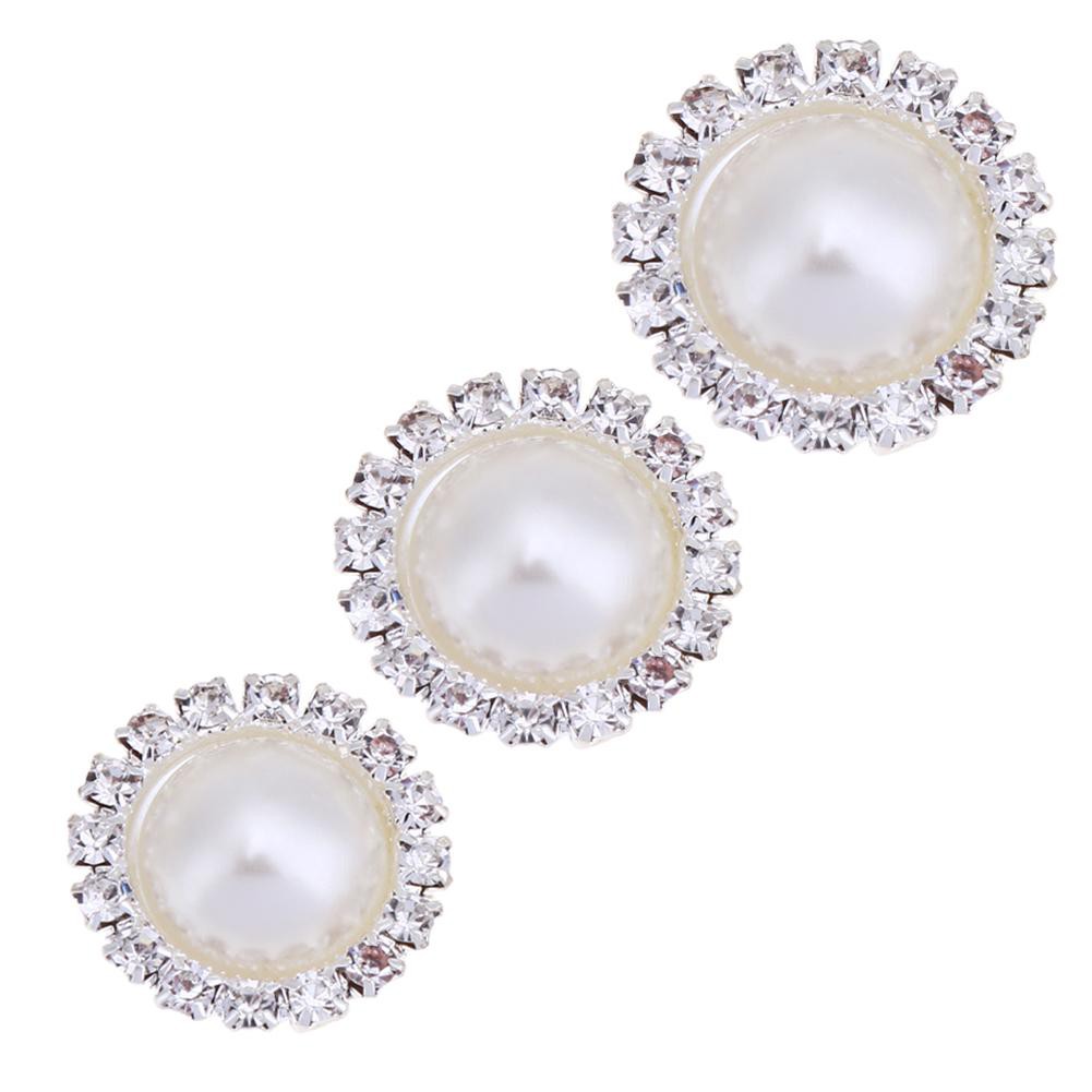 10pcs Diy Crafts Round Flat Bottom Rhinestone Button Pearl Wedding