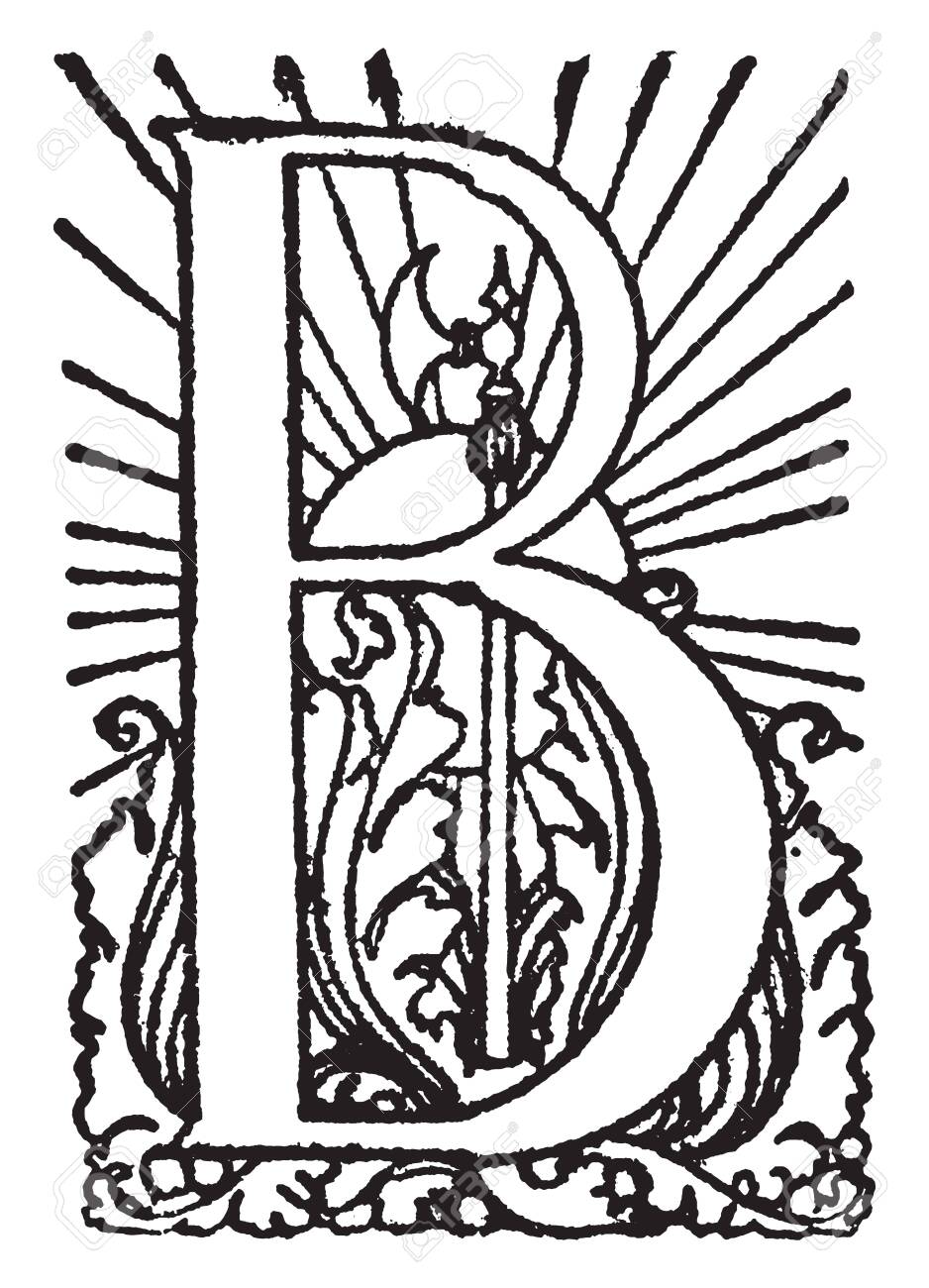 Vintage Drawing Of Decorative Capital Letter B With Floral