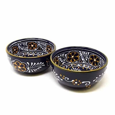 Handpainted Pottery Clay Bowl Navy Blue Etsy