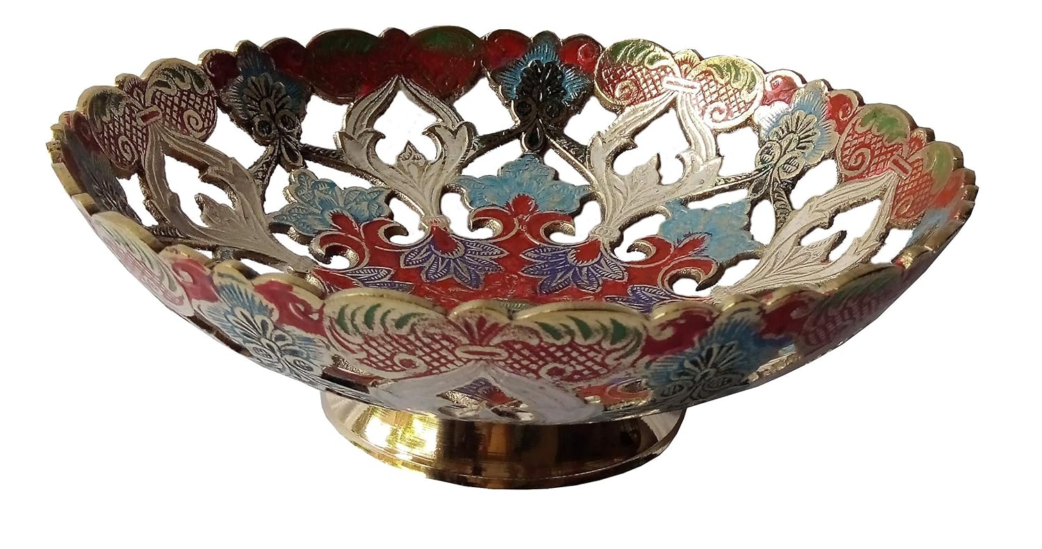 Buy Mozo Hub Brass Navy Blue Fruit Bowl Flat Jali Pattern 24 Cm