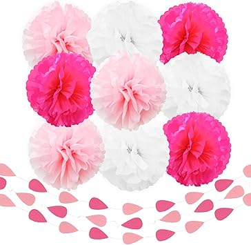 Amazon Com Beleheim Tissue Paper Pom Poms Blue Pink White For
