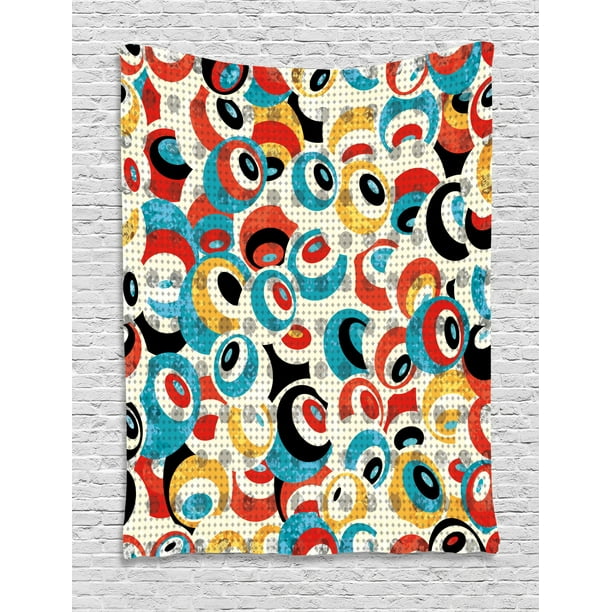 Psychedelic Tapestry Retro Theme Circle Pattern Evil Eyes Design