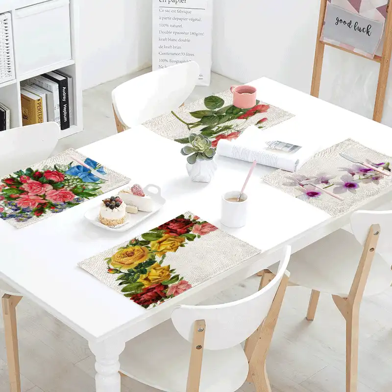 Promotions Simple Kitchen Tablecloths Linen Napkins Colorful Roses