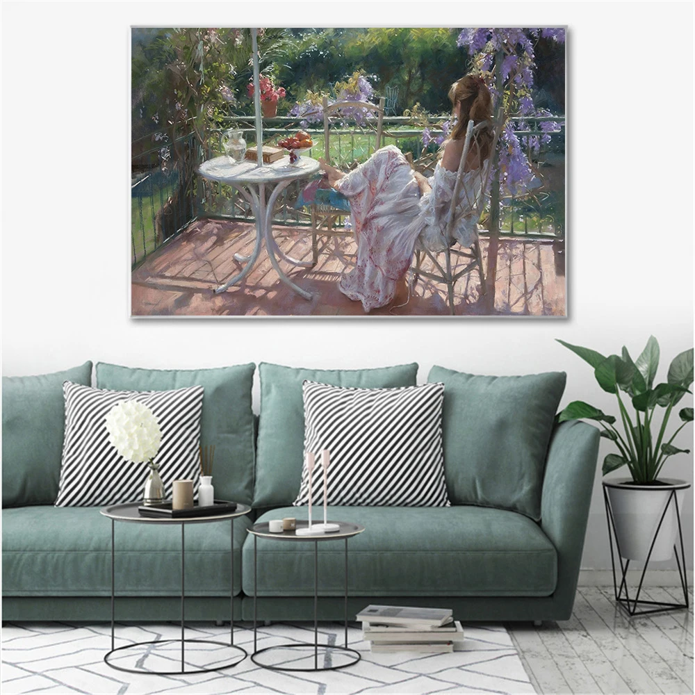 Abstract Oil Painting Villa Relax Girl Wall Art Picture Canvas