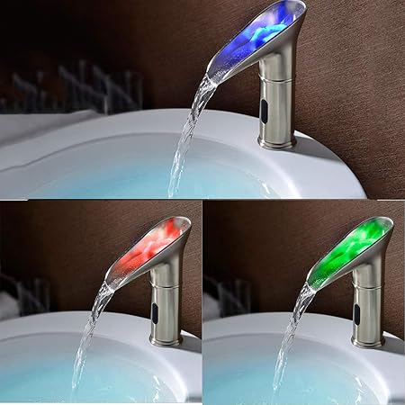 Intelligent Led Electronic Sensor Bathroom Sink Waterfall Faucet