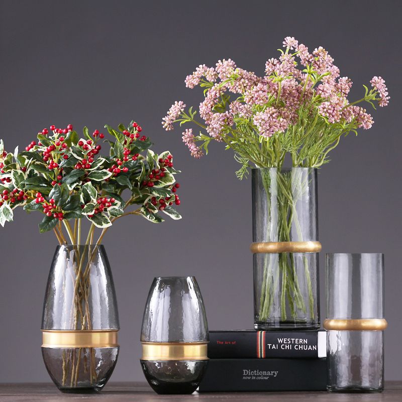 Modern Cylindrical Glass Vase With Metal Ring Glass Vase For